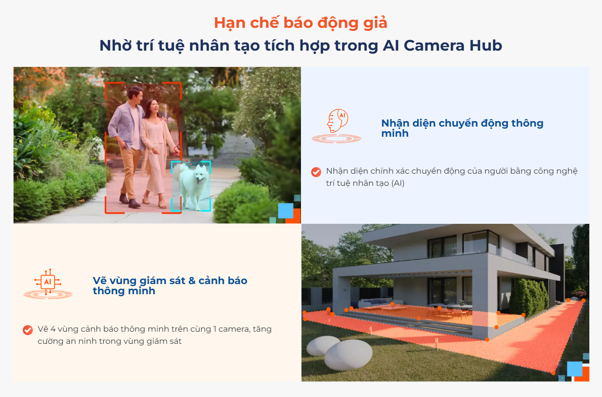 - AI Camera Hub hỗ trợ nâng cấp hệ thống camera thông thường trở nên thông minh hơn; kết nối với các thiết bị smarthome tạo thành kịch bản an ninh công nghệ cao, mang đến giải pháp an toàn tối đa cho mỗi gia đình.