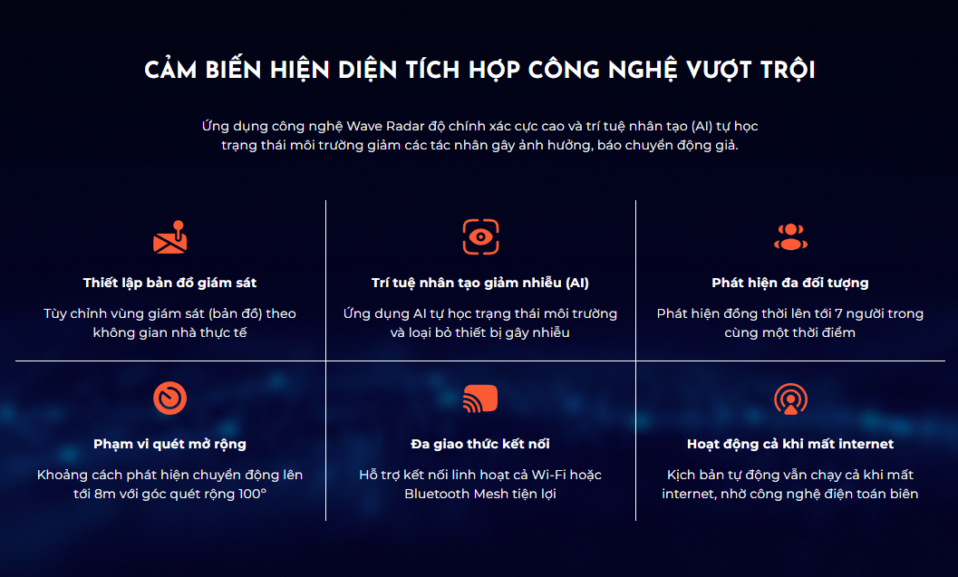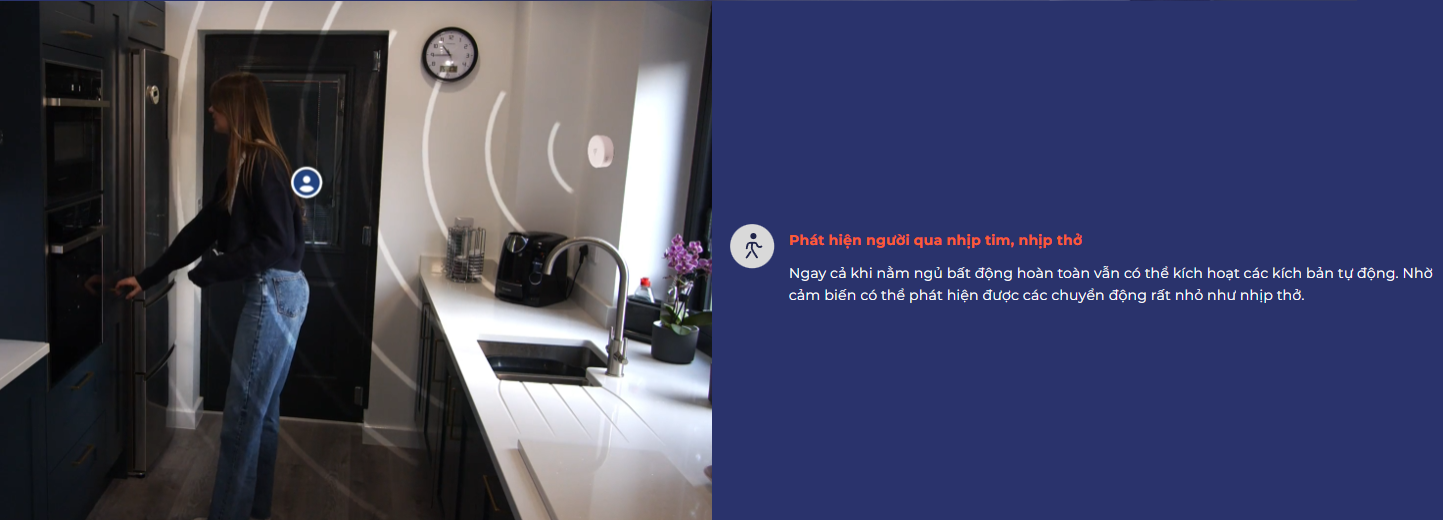 - Phát hiện chính xác sự hiện diện của người, qua những chuyển động rất nhỏ như nhịp tim, nhịp thở.