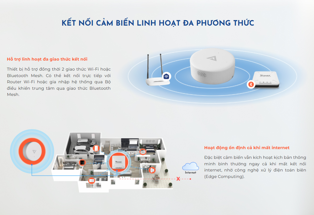 - Cấu hình linh hoạt nhờ hỗ trợ đồng thời giao thức Wi-Fi hoặc Bluetooth Mesh.