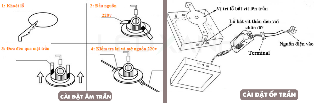 Đèn âm trần và đèn ốp trần là gì? Khác nhau ở đâu?